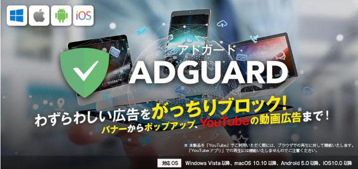 現在、広告ブロックソフトは100種類以上存在すると言われています。その中でも世界的に高い評価を得ているのが AdGuard(アドガード) です。