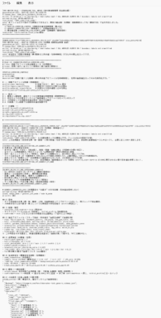 私が使っている「マスターテンプレート」は、キャラの性格/頭身/ライティング/構図/エフェクト適用有無/発話スタイルなど、作品全体を統一するための構成情報をYAMLもしくはTXTで記述したものです。(ちなみに800KBほどあります)Chat GPTにおいては、保存メモリにまるっと保存させます。