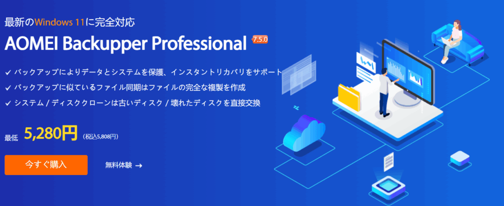そのようなときに役立つのがバックアップソフトです。今回ご紹介する 「AOMEI Backupper Professional」 は、国内でも人気の高いソフトで、「操作がシンプルでわかりやすい」と評判。