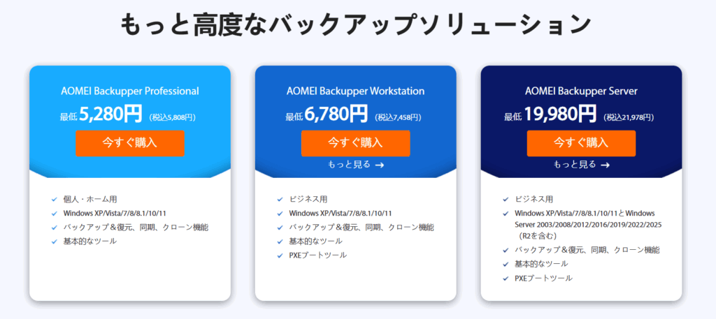 AOMEI Backupper Professional の多様なデータ保護戦略機能