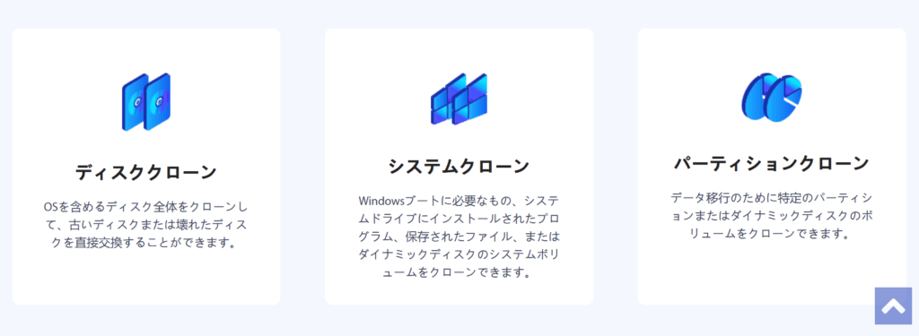 - クローン:ディスクやシステムを丸ごとコピーして、そのまま使える