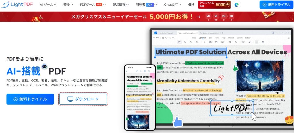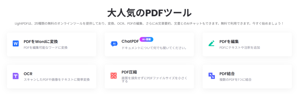 そんなとき、目に飛び込んできたのがLightPDFです。
