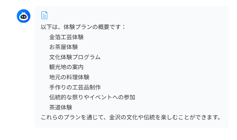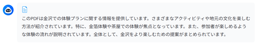 例えば私は、観光案内のPDF(数ページの説明文+写真入り)を読み込ませました。
