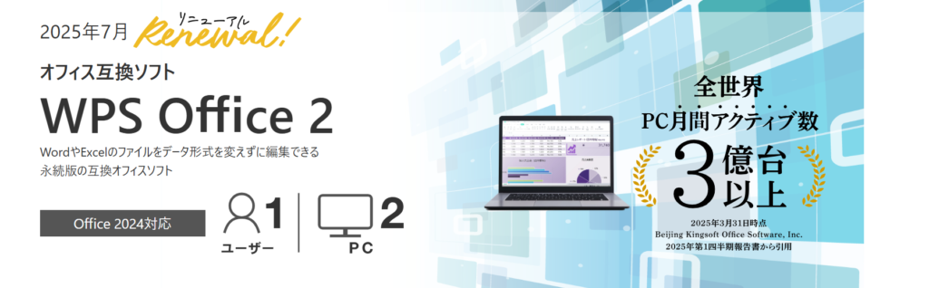 そこで候補に挙がるのが WPS Office 2(2026版)。