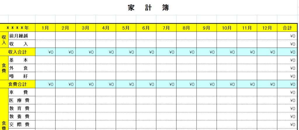 実際に家計簿を作成してみました。